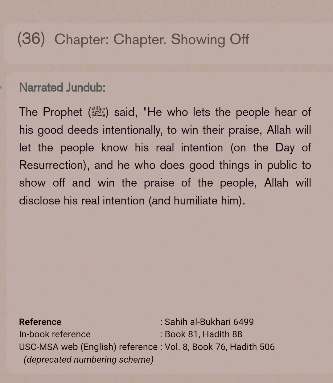 A basic Google search of Bukhari 6499 gave me something else