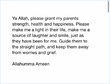 Rabbighfirli wali walidaiya walil mu’mineena yaum yaqoom ul hisaab Ameen