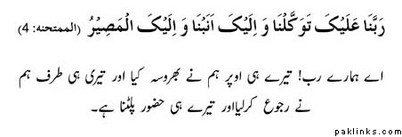 O our Lord! In You (alone) we put our trust, and to You (alone) we turn in repentance, and to You (alone) is (our) final Return. (AL-MUMTAHINAH: 4)