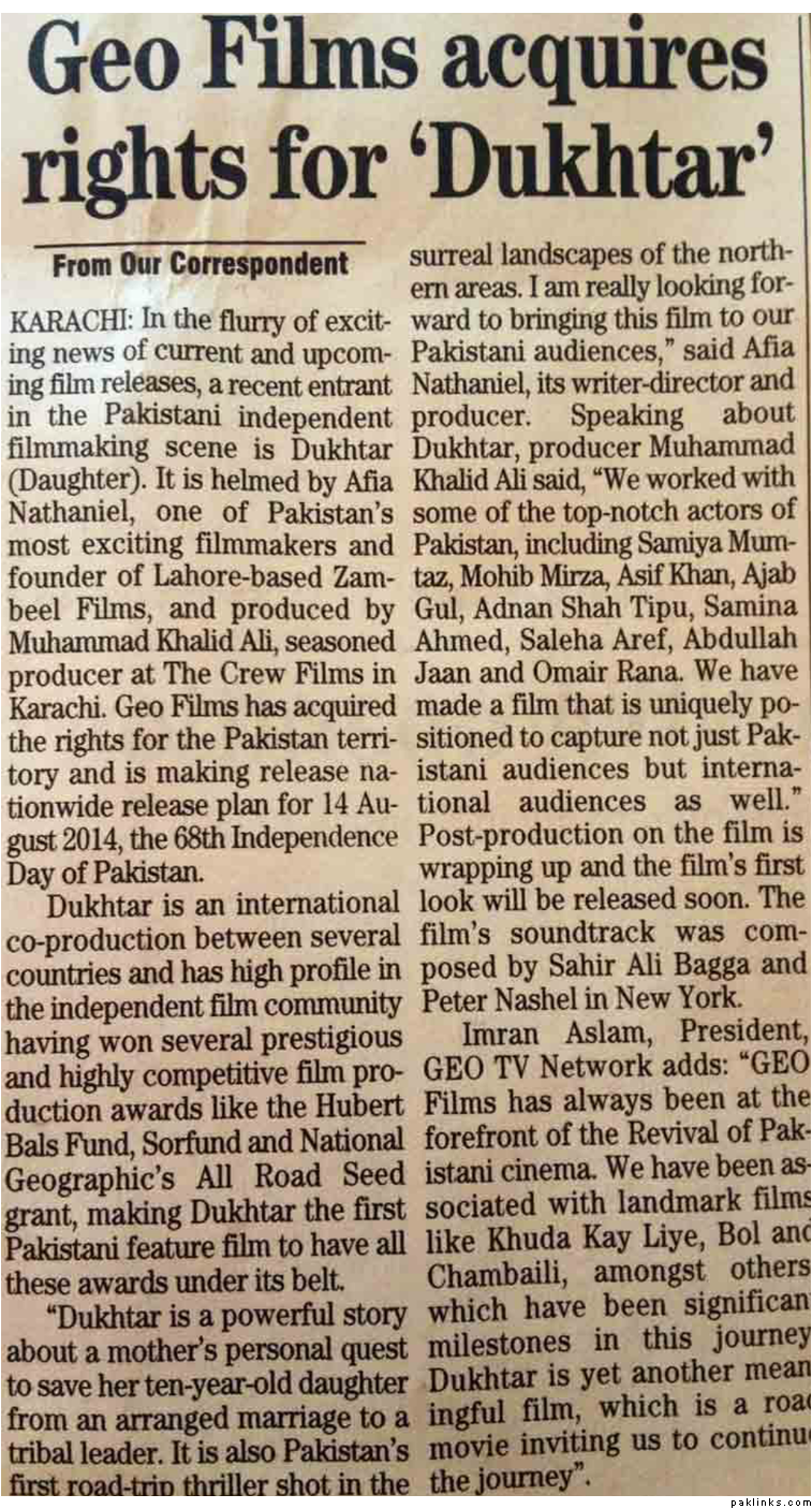 Through Dukhtar, Nathaniel intends to revitalise the stereotypical image of Pashtun culture in films. “You will get to see a strong Pashtun woman in the lead role in a film (Dukhtar) that doesn’t require her to do an item song. How often do you get to see that depiction in Pakistani cinema?”