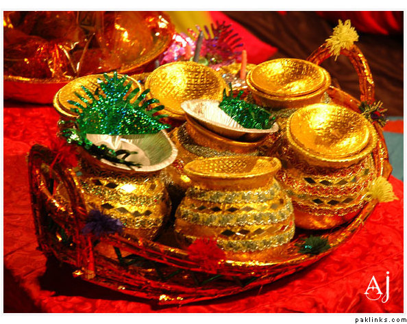 Some of them are still incomplete. The “diya’z” and bowls are to be filled with candles, mehendi, oil, ubtan and chocolates etc.