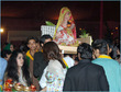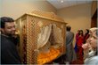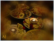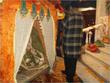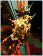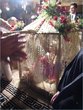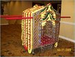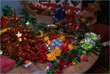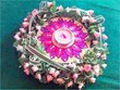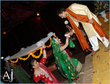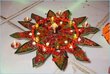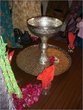 This is made of glass, decorated with small glass bowls for candles, glass paints, beads and small mirrors. It is incomplete, though.