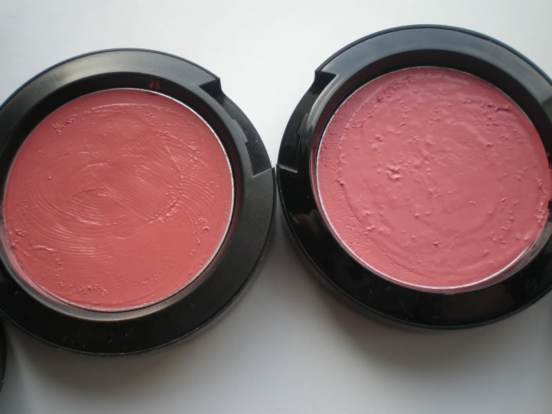 NYX Cream blush in Glow (right) is very similar to MAC Cream Blush in Posey (left). The MAC ones are $20 while the NYX one is $3-$4. They are the same in size and packaging too.