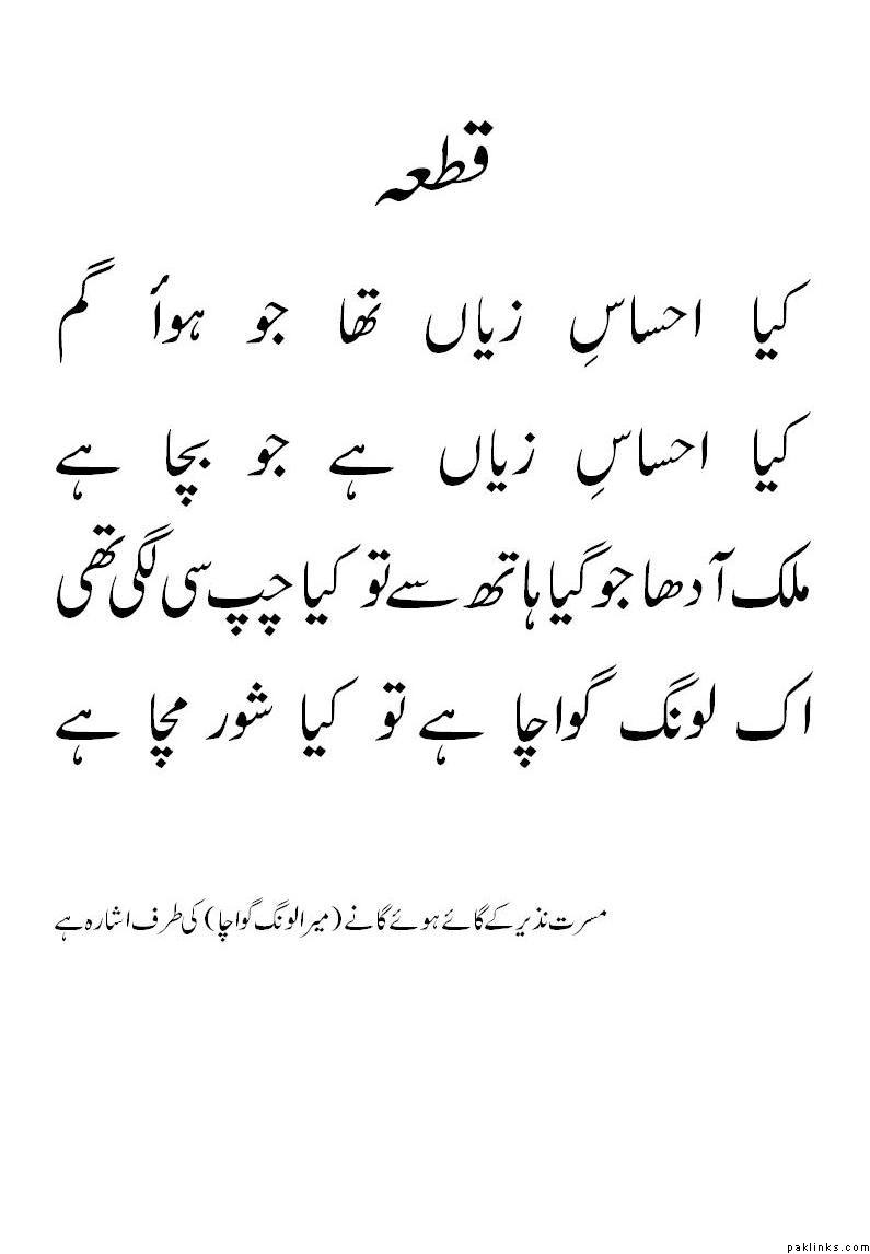 My brother, I was also spell bound, so was my family. I was a kid, but I still remember those dog-fights over Lahore and chilli nights in trenches. But at-least I never let myself bewildered by Indian Propaganda. Over here, I would like to attach one of my own poems. I know, it is not the forum, and it should be in Poetry section, but since, its a matter of my country and her loss, I have attached it nonetheless.