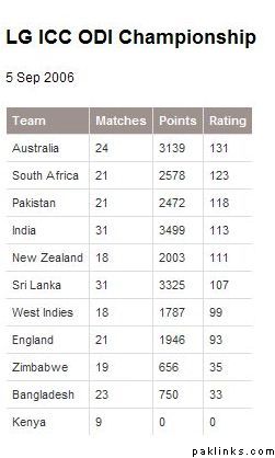 On a seperate note, although it's great that Younis is playing well at the one down position but that seems to have screwed up another consistent run getter Shoaib Malik. He has been off color so far in the series and his track record as one down was excellent. While I am not suggesting that Younis be moved from his position as he is a better batsman then Malik but then I dont really think Malik has a place in the XI. It should be a toss up between Malik, Afridi and Razzaq and Malik, if selected over one of those two should be batted lower down the order where he could be explosive as he demonstrated when he use to play down the order. Some people might remember how he take the South African attack apart and left Pollock wondering where to bowl to him. We need to start playing a genuine opener or try and open with Akmal (he couldnt do any worse then what he has been doing so far on this tour) and move Malik down the order forming an explosive lower middle order along with Afridi and Razzaq.