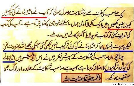 We proudly own a copy of Hafeez Inayatullah‘s famous book***‘khaana pakaana’*** (cooking meals). At first we thought the book was written by a male author named Mr Hafeez, but after reading the preface it dawned on us that author is infact a lady named Ms Hafeez, because she wrote the word ‘raqma‘(female writer) before her name.