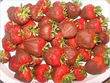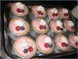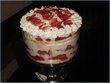 Make small strawberry gateau squares. Tray bake vanilla sponge, slice into 2 layers and layer with chopped strawberries mixed in sweetened whipped cream, cover the top with whipped cream and cut into small squares. Top each square with a strawberry half.