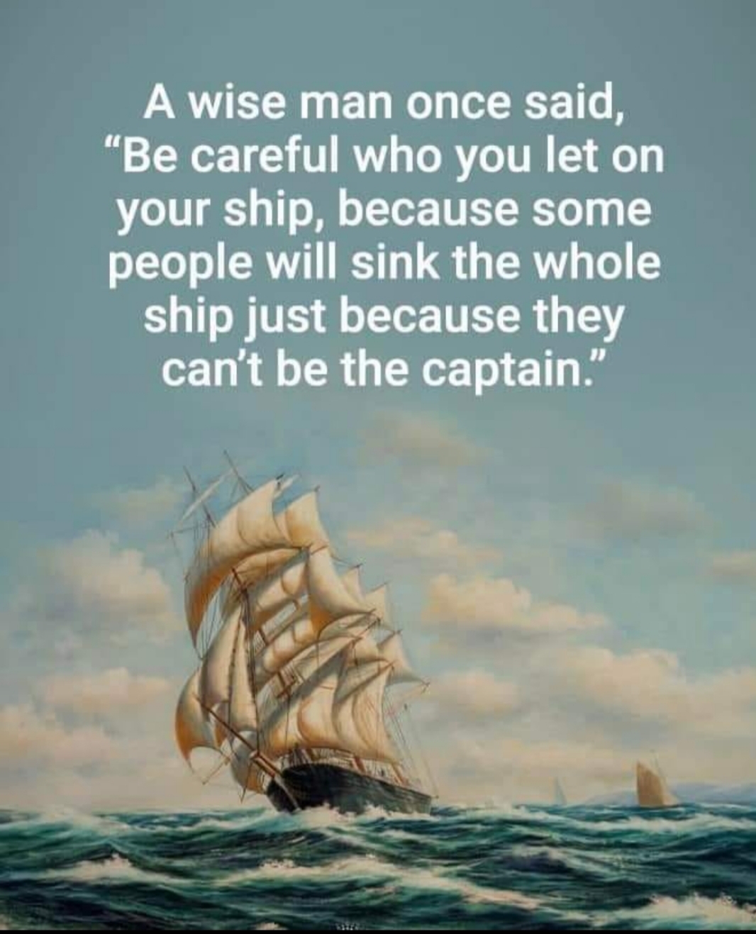 Maybe it seems too far fetched, the situation is like Noah's Ark right now. Whoever is on the big boat will survive, the rest will get destroyed. Noah's own son and wife drowned in the Big Wave.