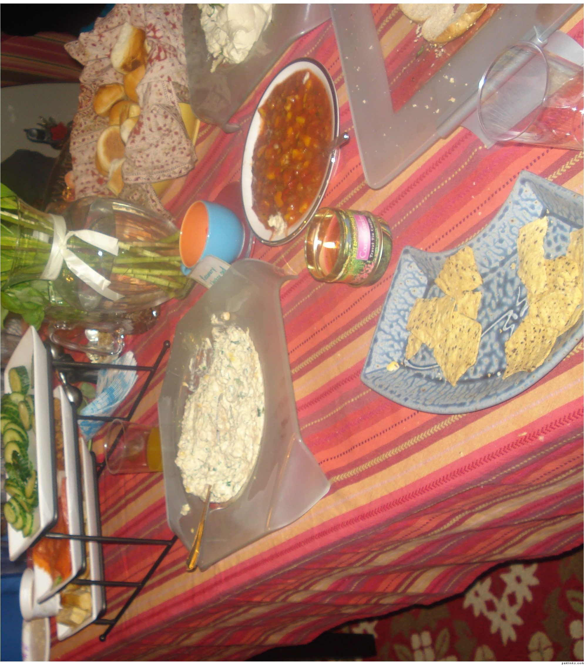 #1 Sorry it won’t let me save the rotated image! Here’s my poor table toward the end of the evening. The home-made rosemary chicken and sweetcorn spread was a big hit. As was Costco’s mango salsa, smoked salmon, and mini crab cakes.