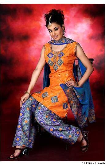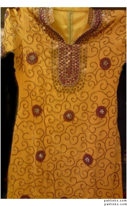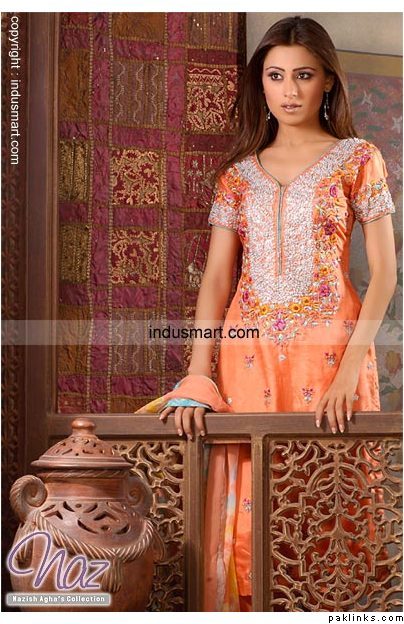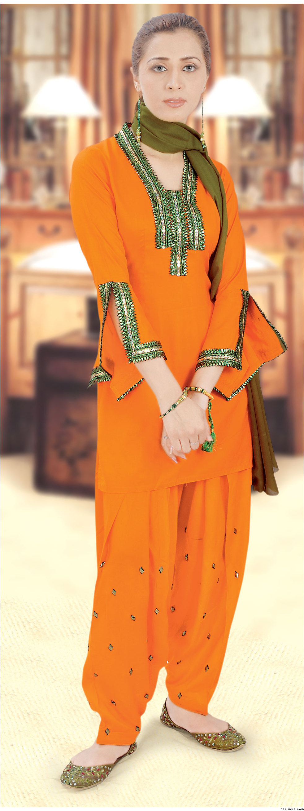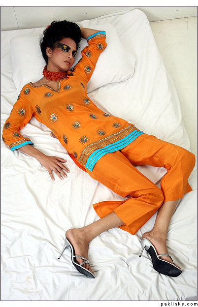 i m new on this forum, i need embriodery patterns for my darkorange silk suit , how shall i get it stiched , simple shalwar kameez or A LINE SHIRT with pants ..