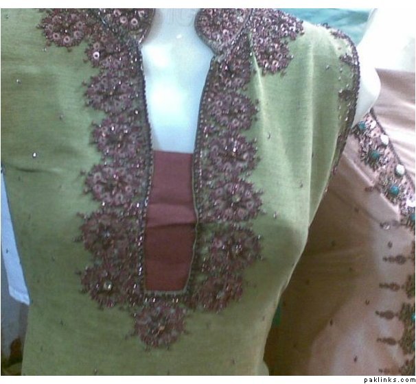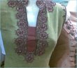 similary i need embriodery design style for parrot green silk suit , plz sugeest color combination , i will be thankful