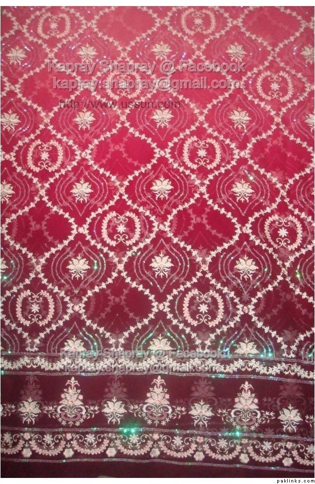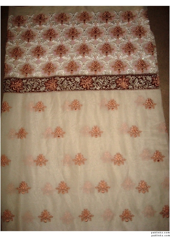 these are available. # 1 will be available in copied version with embroidered back,sleeves and dupatta shortly. the blue one is also a copied version of the offwhite one. Offwhite is original one from needle impressions though
