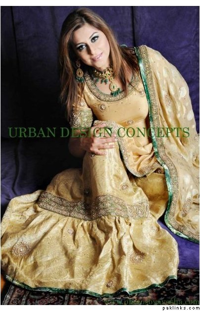the lengha u sud make a farshi ghararah, which is a dull gold color with green piping ot match the shirt and dull gold work on it... the dubutta us ud make red but the broders sud be that emerlad green color, n the piping can be dull gold like the legnha