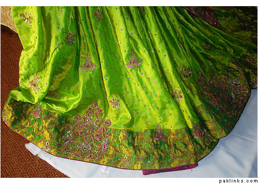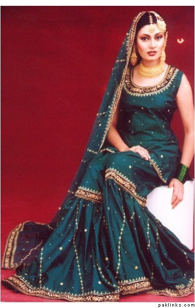 I’m new to this forum, but finding it very helpful! I’m looking to get an emerald green gharara made for my sister’s wedding…I want the old-style glamour look…so I’m thinking of having it with sort of antique gold kadai and maybe a hint of pink or gold running through it…please help! I don’t know know the different kind of embellishments/embroidery you can get on outfits…what is dabka work? Zari etc? And what could look good? I want the bottom and top to both be emerald green as i think one block colour streamlines the look and makes you look slimmer But I’m thinking that another colour should be introduced so was maybe thinking of like a rose pink in the embroidery and ghot and in the dupatta to be rose pink too?