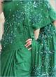 It’s surprisingly difficult to find a really nice Green saree, and then on top of that an emerald green one seems near impossible. I would also suggest you choose a saree that has a design on it that you like very much, and get that design put on your specific saree. Here’s one pic that comes close to emerald green: