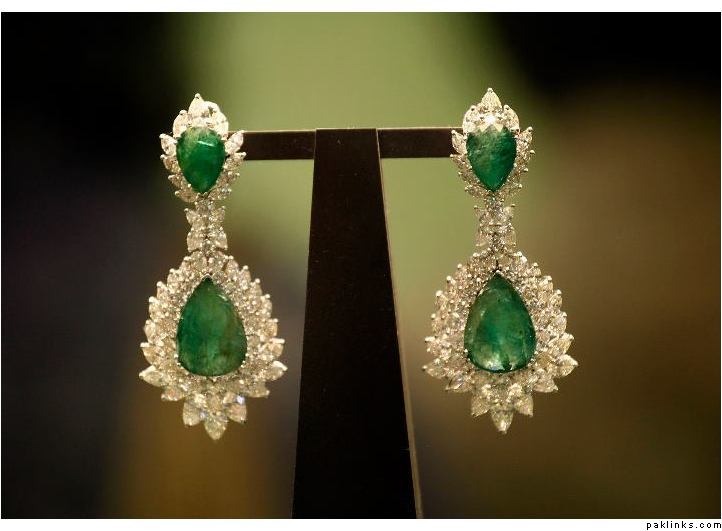 Zambian emerald earrings by Talwarsons Jewellers (Chandigarh):