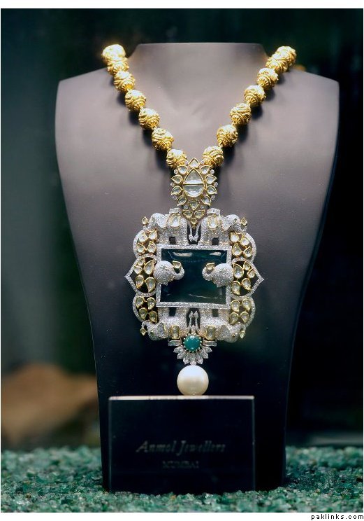 Zambian emerald earrings and Necklace by Anmol Jewellers (Mumbai):