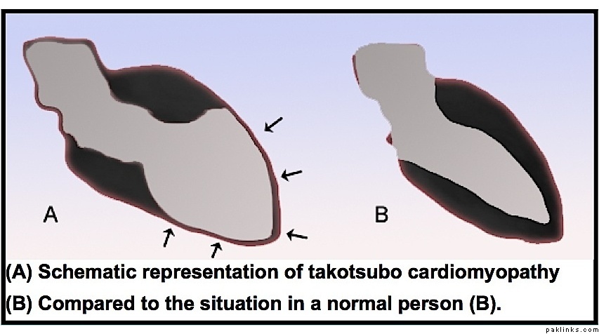Broken heart syndrome may be caused by the heart’s reaction to a surge of stress hormones. The condition may also be called takotsubo cardiomyopathy, apical ballooning syndrome or stress cardiomyopathy by doctors.
