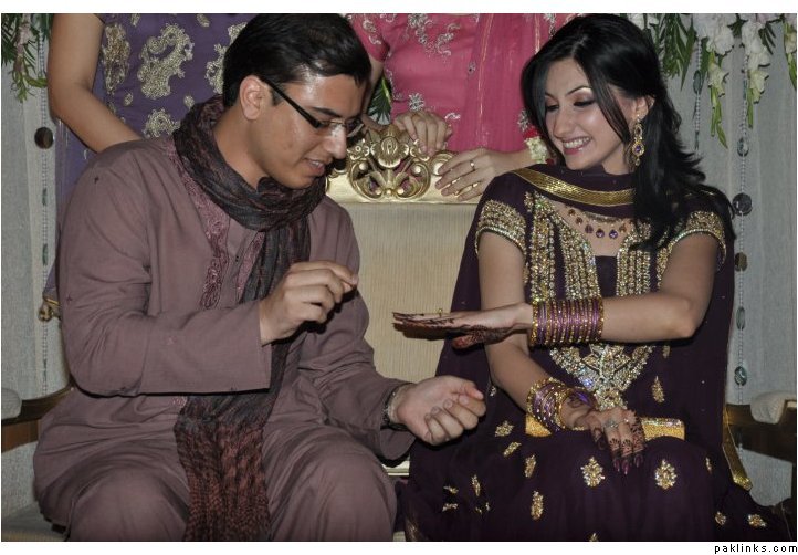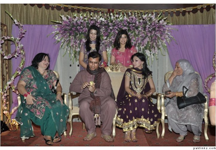 That's pretty clearly a posed photograph. In any case, its not the first (or the last) picture I've seen of Pakistani/Indian brides and grooms posing with cell phones. I think it looks utterly ridiculous - not only is it a blatant attempt at showing off, but a pathetic one at that, because by now most Pakistanis own cell phones...they're really nothing to show off.