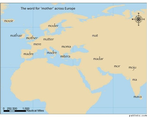 Instead of comparing DNA from different species, the researchers looked at “cognates” which are words with a common origin. One example is “mother”, “mutter” (German) and “madre” (Spanish).