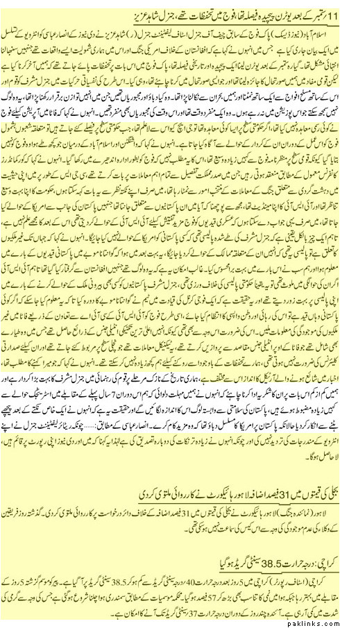 Shahid Aziz, who enjoyed an exceptional reputation in the Army, disclosed that when initially consulted after 9/11, the top commanders had decided that the Pakistan Army would remain out of the conflict.