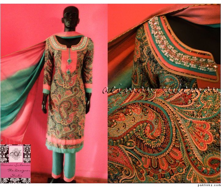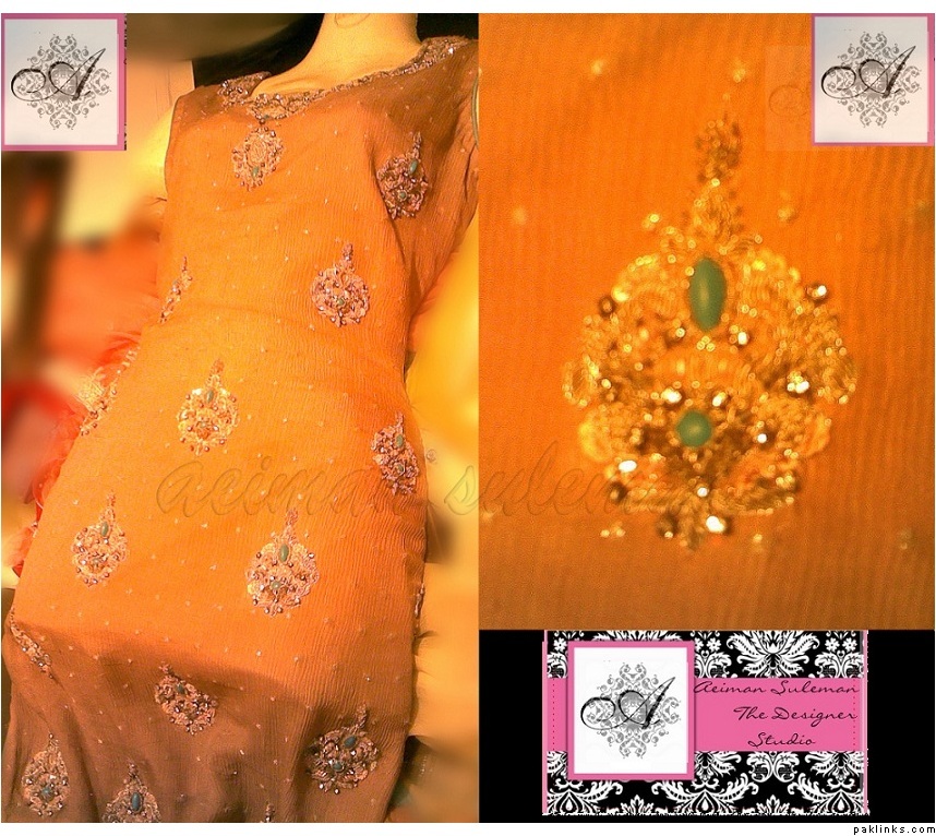 Aeiman Suleman Designer Studio is basically a new venture. I am an Islamabad based designer, did courses and diploma in fashion design from Islamabad and Lahore, my major courses were Patterns and Fashion Marketing.