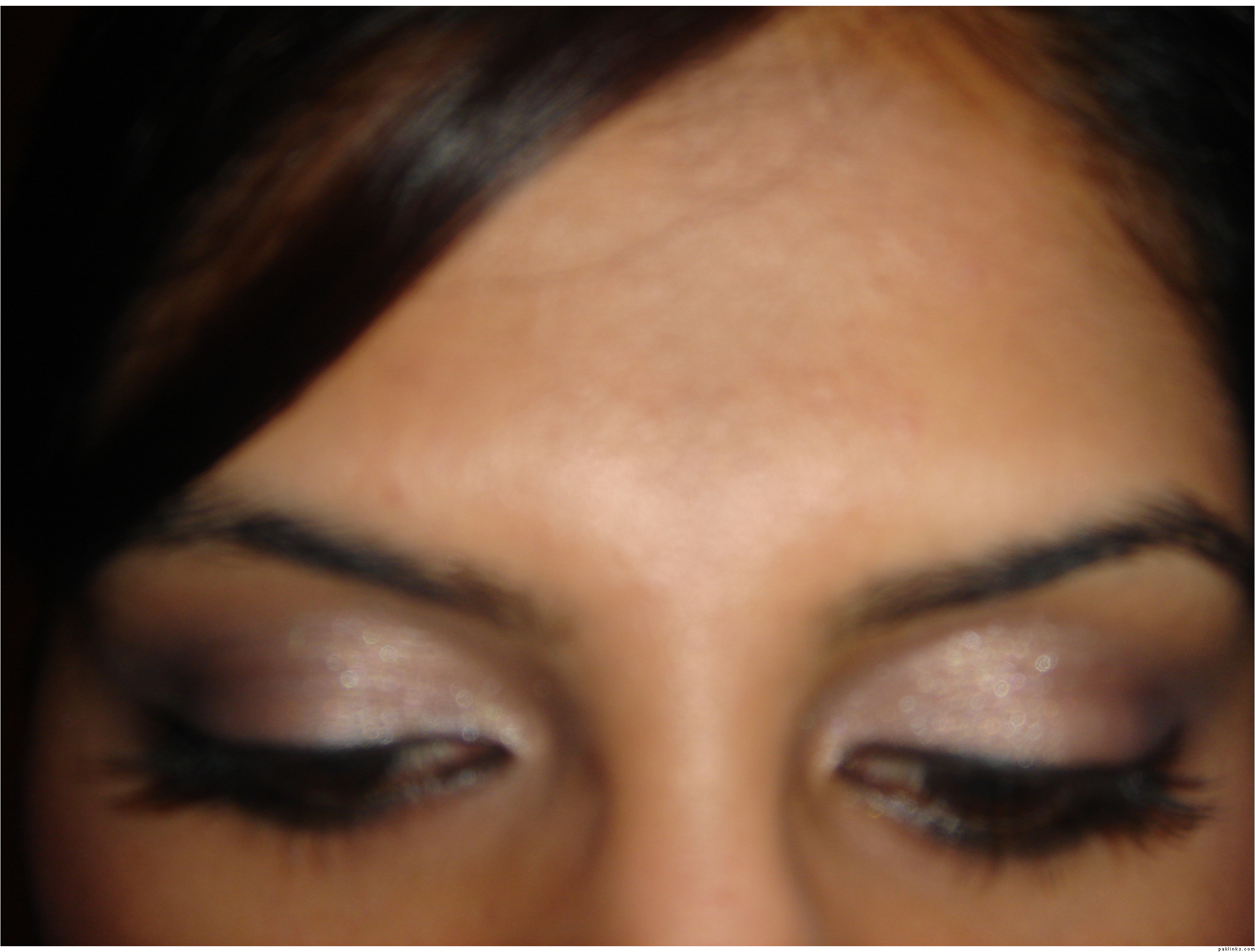 none that i can pull out right now, but you know how those desi bridal eyes are. really color full with hot pinks, really dark outer corners, and gold highlighted brow bones.