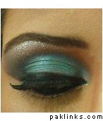 yesterday i wore a teal kurti with hot pink flowers on the gala, jeans, and a matching bright pink hijab and thought i should match my eyeshadow too. i looked in my makeup drawer found a nice matching teal eyeshadow in my stila loves barbie pallet and put it on blend it well with darker green blah blah blah. on my way to uni when i stopped at the stop light i checked my makeup in the rare view mirror, it looked so dark in the sun light, i took a tissue and wipe off as much as possible to tone it down.