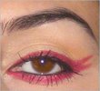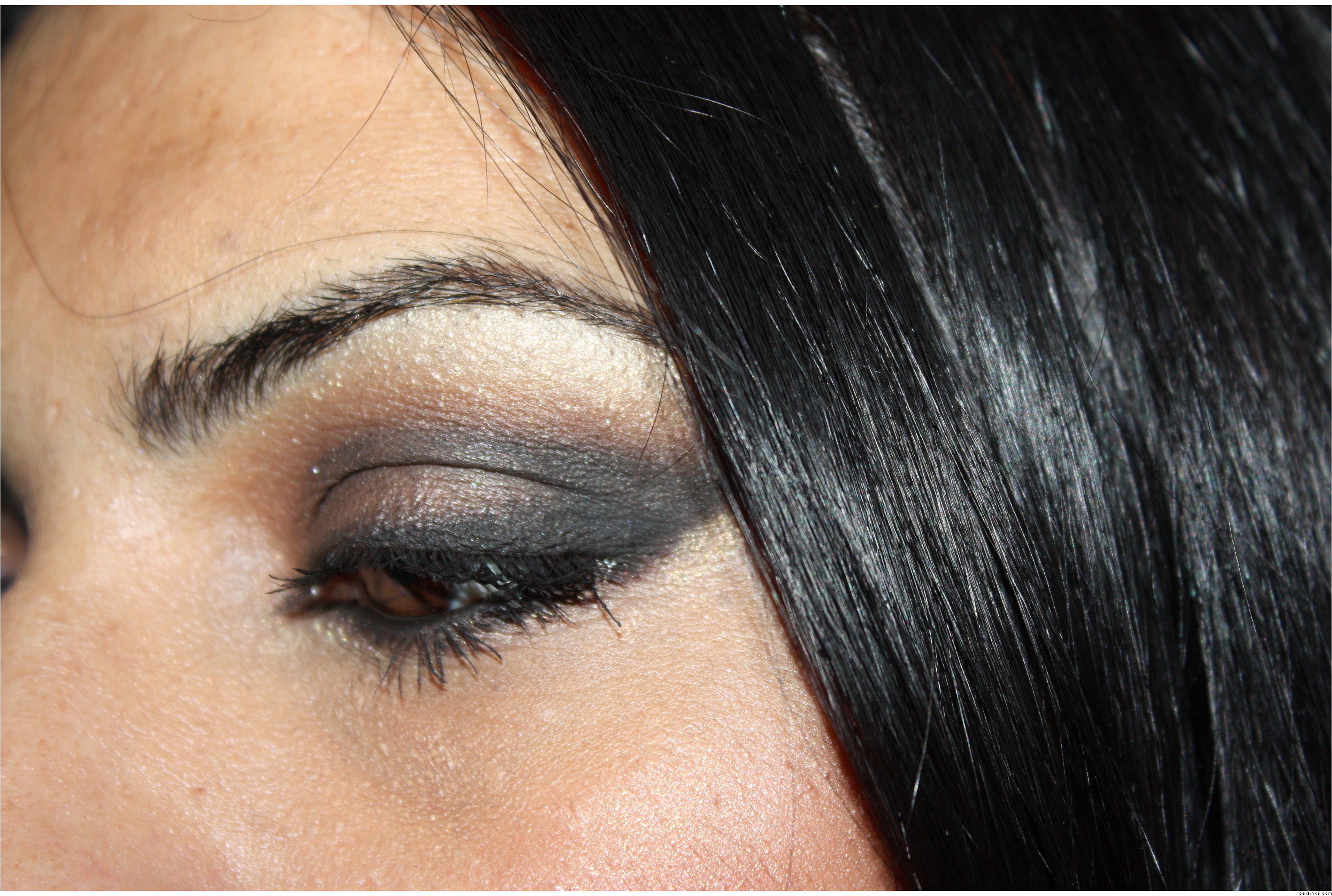For the first one i used, Print over the eyelid, mulch in the crease and on outer eyelid, Solar white as a highlight. soft brown above crease and Carbon on outer crease. blended all like crazy. I used tape on the edge of the eye to get the neat flick, Blacktrack to line the eyes. and a little bit of mulch on the lower lashline too.