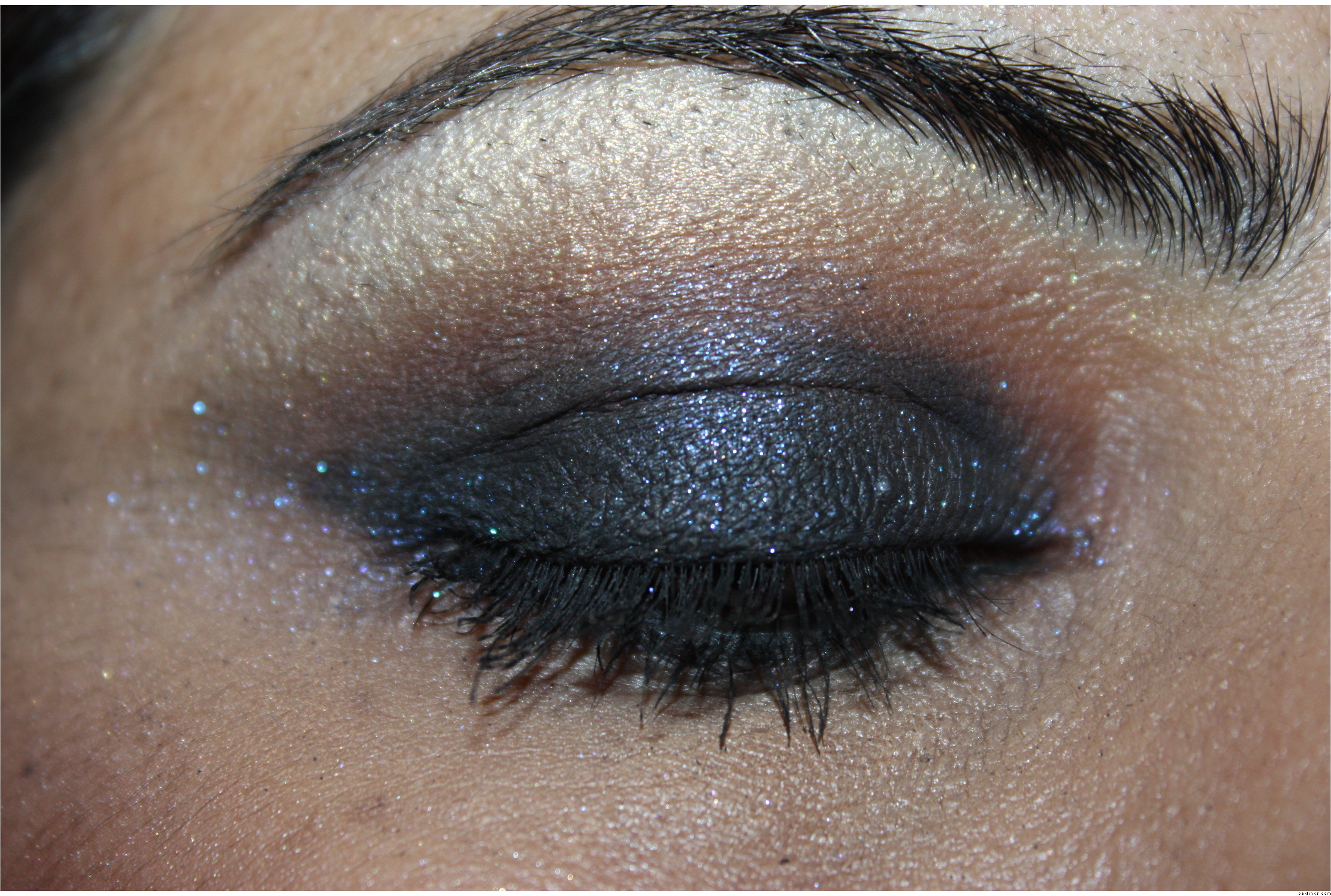 Soft brown again in crease and solar white again as highlight. But the blue glitter from the blue flame eyeshadow looked really pretty as it glistened in the light.