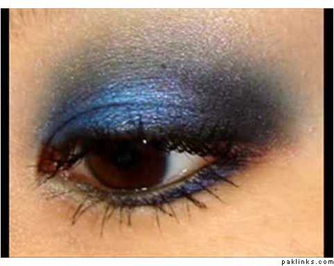 ok i want eye makeup ideas for this dress..!!! its royal blue and parrot green and the work on it is just the orange and lilac coloured embroidery!