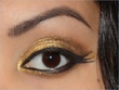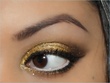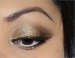 Thanks, sure! I used NYX's ultra pearl mania in the gold color, then added MAC's reflects antique gold glitter to it, and I added a hint of a shimmery light brown towards the crease. After that I used a thin artists brush to apply black gel eyeliner and made two extra flicks. The flicks are supposed to to give the illusion of longer lashes, and you should wear mascara if you're doing this eyeliner, I didn't bother because this was just a trial look I was trying for an upcoming wedding.