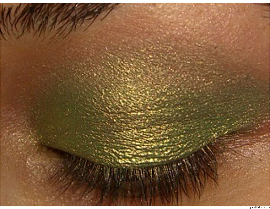 Hopefully you can see what I see, that the Golden Olive Pigment is much more rich in color and “looks better” than with Paint alone… I applied the shadows to the two eyes the same way.