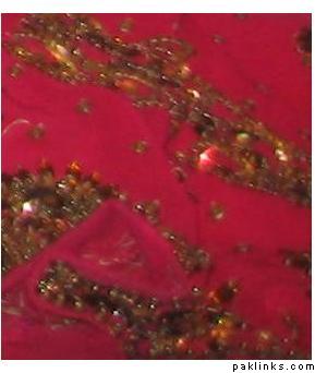 my suit is a magenta colored anarkali style pashwaas with copper beads and kaam. here’s a picture of the color without giving away the suit
