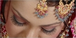 Hmm i wudnt over-do the blue eye makeup, that will get too matchy matchy. depending on the kaam of ur dress, u can do a heavier golden/copper/bronze eye with a hint of blue and a neutral but slightly glossy lip..