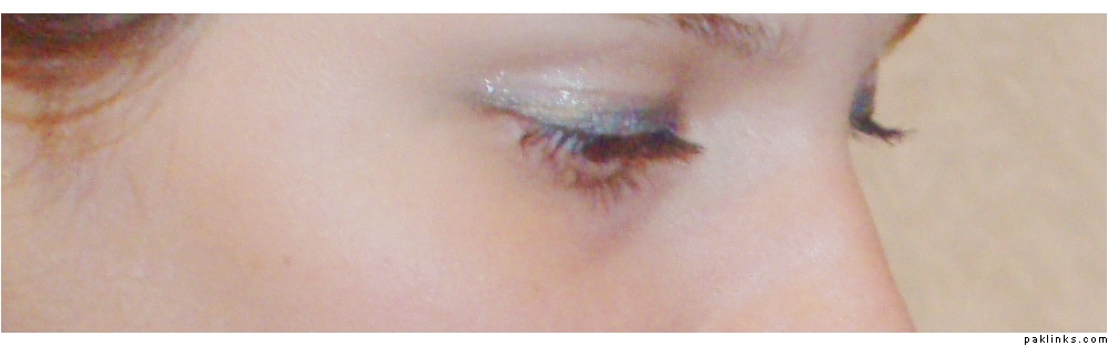 Cover u're entire eye-lid with ink blue (with glitter if it's formal) and close to the lash line smudge black shadow and blend well...then trace u're bottom lashes with the same and line u're eyes with dark/ink blue pencil. You'll get u're "smokey-eyed" look and color to go with u're dress =)