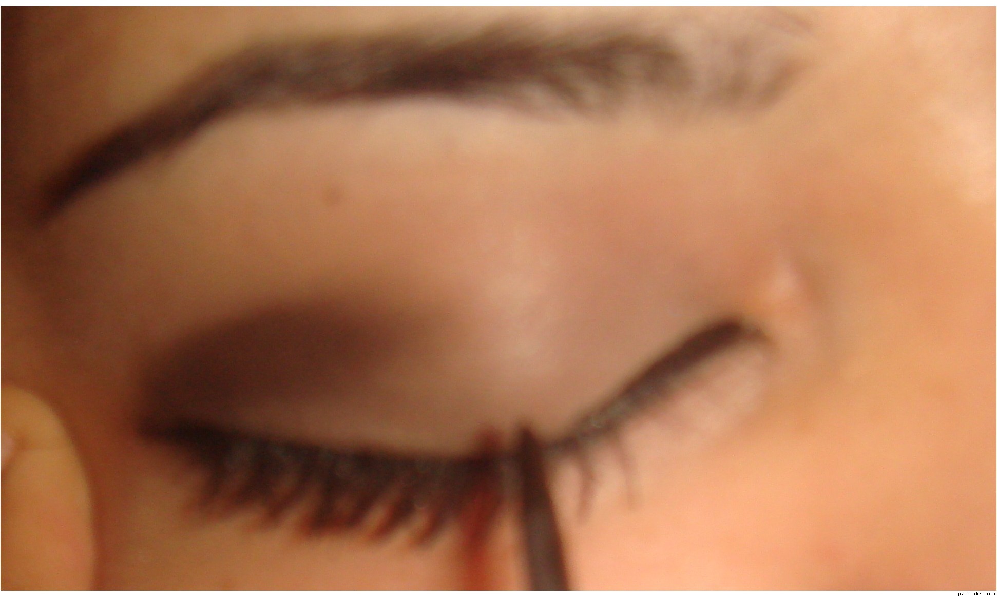 From the inside of your eye to the outside, kyunki andher say thori si patli honi chaye, aur bahir say thori moti, aisay look zaida acha atha hai.