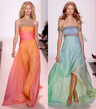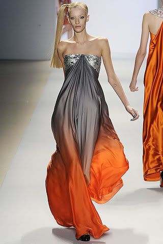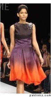 ^I see four or five different shades and colours in the dress above (the orange/grey one), I'm guessing they dye the fabric using various lighter or darker shades of a colour until it merges or blends in with the other shade/colour.