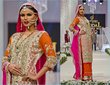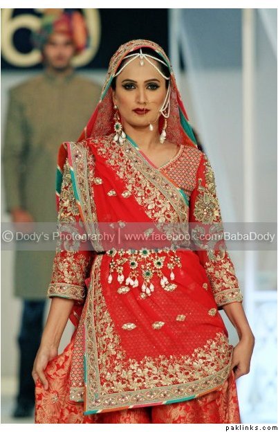 Because its for my baraat day, I think the colours will be too light and dull. So i asked Fahad if I could get it in that ruby colour (like the bridal oufit in pic no. 8). I also showed him my jewellery set because i want it to macth my lehnga and it has a ruby stone in it. He said its a good idea, and suggested me RUBY AND SEAGREEN WITH HINT OF PURPLE. I am kind of stuck, WHAT YOU GUYS THINK??? He ment it would look nice. I live abroad. So I wont be able to visit his outlet. But they have a extremely good service, and they respond very quick to your messages…