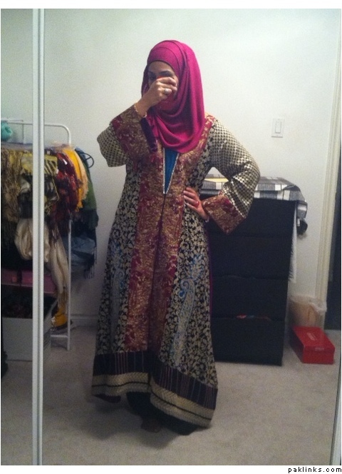 its a pretty long kameez, and it really does look like an abaya. In my opinion, looks better than those bedazzaled abayas you see these days. It’s more elegant.