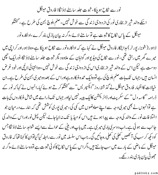 I am confused! what do they mean by “Noor se nikah ho chuka”, that’s OLd news. They were married a few years back and then two years back Noor wanted a divorce because he was allegedly having an affair with sanam baloch. Daily Times - Leading News Resource of Pakistan