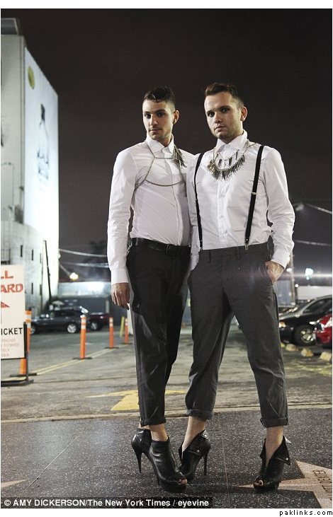 Luke Nero, a promoter at Mr Black club in LA, told the New York Times: ‘I went to a loft party yesterday, and there was a guy in normal shorts, normal tank and really hot red pumps. That’s it! Everyone was like, “Oh my God, I love those shoes!”’