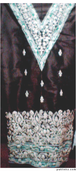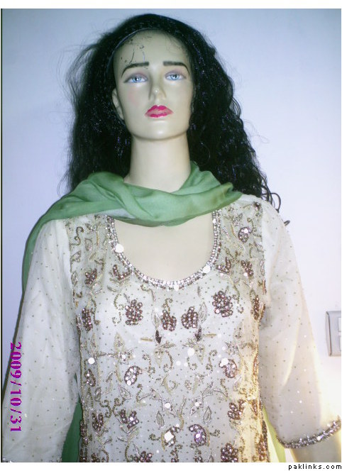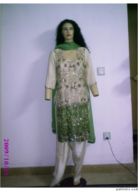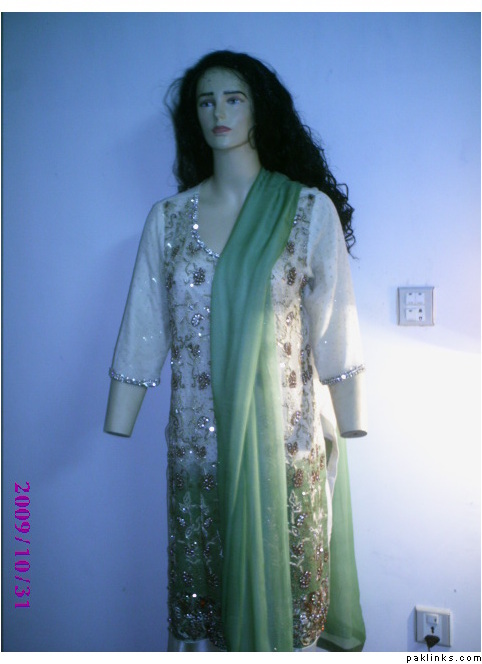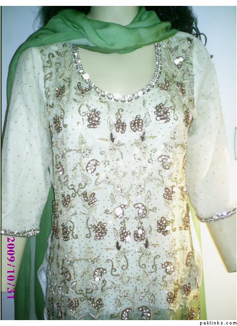 Starting from top, the 1st one is worth 200 Dollars which is hand embroided with motifs, beeds, nugs, kora, etc and is dye in two shades. It can b stiched in any size even with variations in fabrics, size and colors.