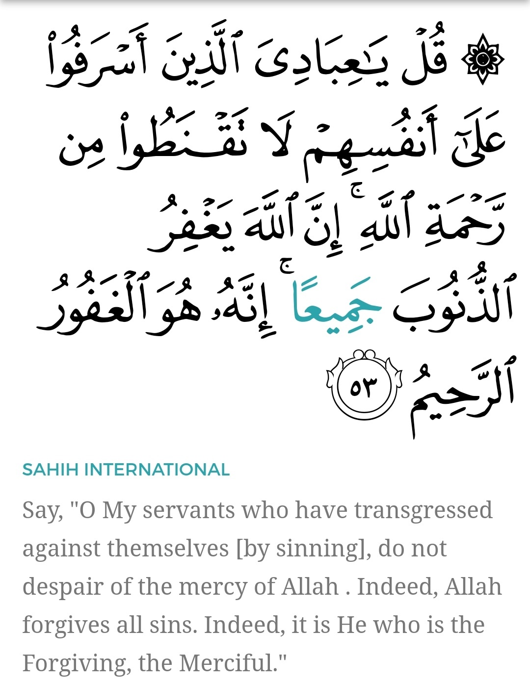 Another ayah I really like is ayah 53 of surah Az Zumar. I love the way it says " do not despair of the mercy of Allah" . The ayah has the words mercy, forgiving and merciful.