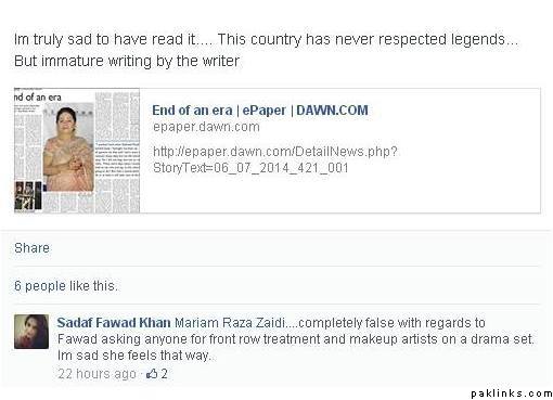 I have no personal enmity towards FK, I felt bad when I read the whole interview and then saw comments on Mahira Khan’s FB that Badar Khalil was sitting on FK’s seat… I was like uski bivi jahez main lai thi wo seat?