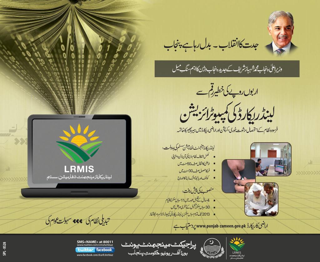 Chief Minister Shahbaz Sharif earlier today chaired a meeting on Land Record Computerisation. The CM was pleased to note that state of the art Land Record Centers which were established in CM’s last tenure are functioning efficiently in Lodhran, Hafizabad and Lahore. The CM reviewed progress on data entry of land record in various districts and directed concerned officials to ensure that Land Record Computerisation in **entire Punjab **is complete by mid 2014. In these state of the art Land Record Centers, besides other facilities documents related to land can be obtained by the owners in a matter of minutes in a most transparent manner. The credit of pioneering Land Record Computerisation goes to CM Shahbaz Sharif and PML-N’s Punjab Government