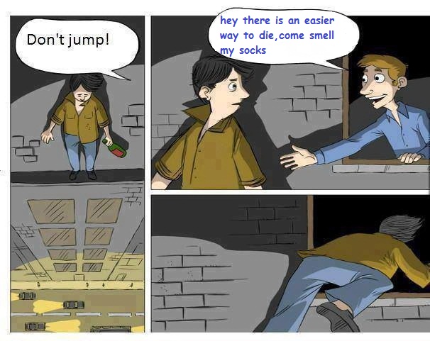"hey there is an easier way to die, come smell my socks"