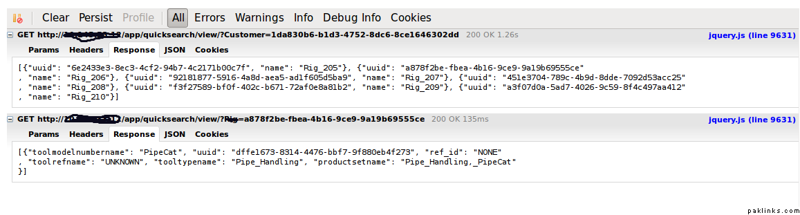 Below I have an example where I am debugging the data that is coming back from a script using AJAX. I have 3 drop downs where the first one has the all the customers, selecting a customer initiates the AJAX call to get all the items assigned to that customer and selecting the 2nd dropdown initiates the 3rd dropdown.