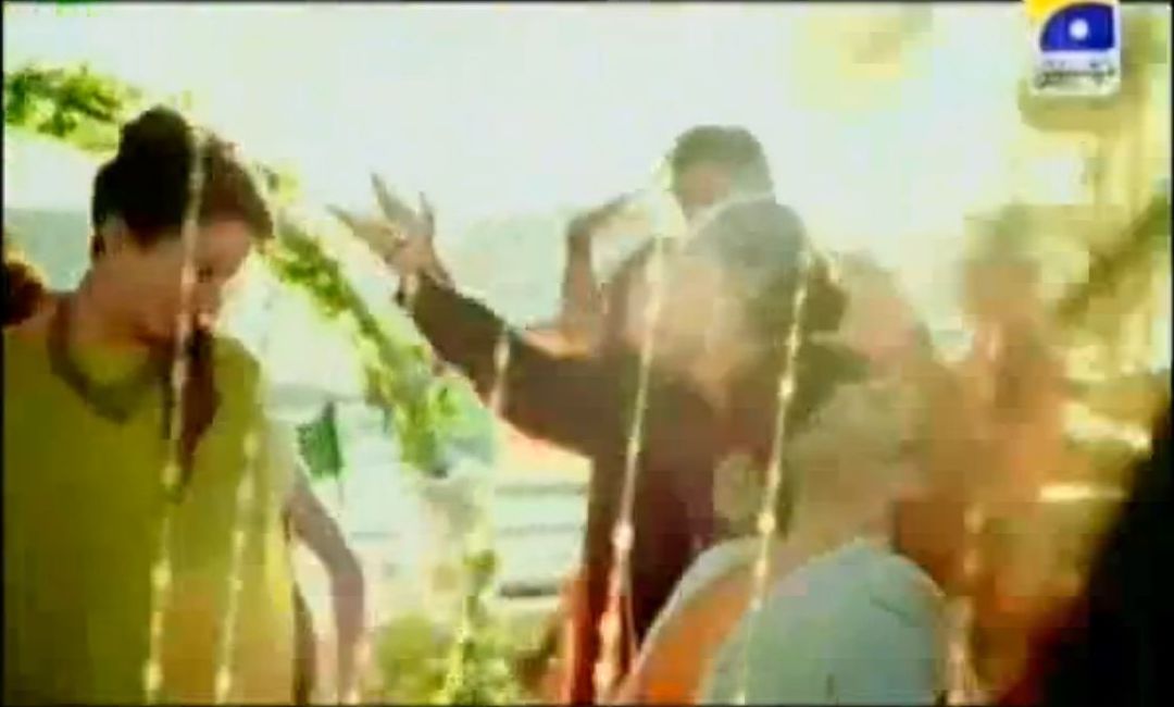 scene changes…and we see an angry DAD (saira’s father) along with saira and her mother on a dinning table…scene change…beenish intentionally left the hot iron on her dad’s shirt..of course,it burnt…scene change…beenish on phone talking about some beach party…saad reaching the party spot with a rose clenched in his teeth,beenish snatched it,saad runs after her to get it back…saira arrives…and there goes the song Kiya hy jo pyar to pary ga nibhana.Song was good and i loved it but, either there was plenty of sunlight or the extra camera light i don’t know what was it that caused the blinding scenes.The blinding light was irritating to the eyes.