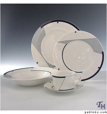This one is Mikasa Angles set in fine china. Not delicate bone china, but still elegant and simple to use both casually and more formal.